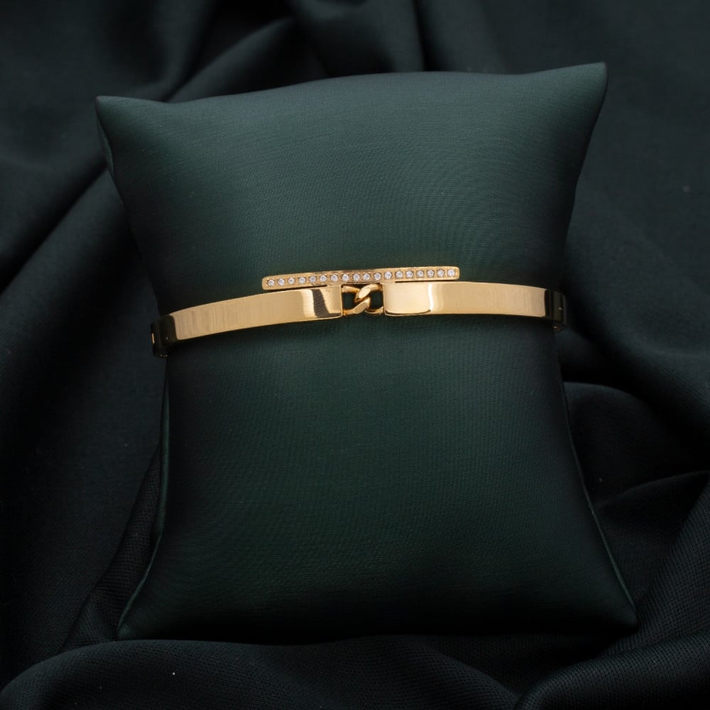 اسوارة فريدة لك من سيكلو, اسوارة ذهبية نسائية بتصميم بسيط ساحر يتزين من الاعلى بفصوص لامعة تعطيه الكثير من الجاذبية, اسوارة مناسبة للاهداء او لارتدائها في مناسباتك المميزة.