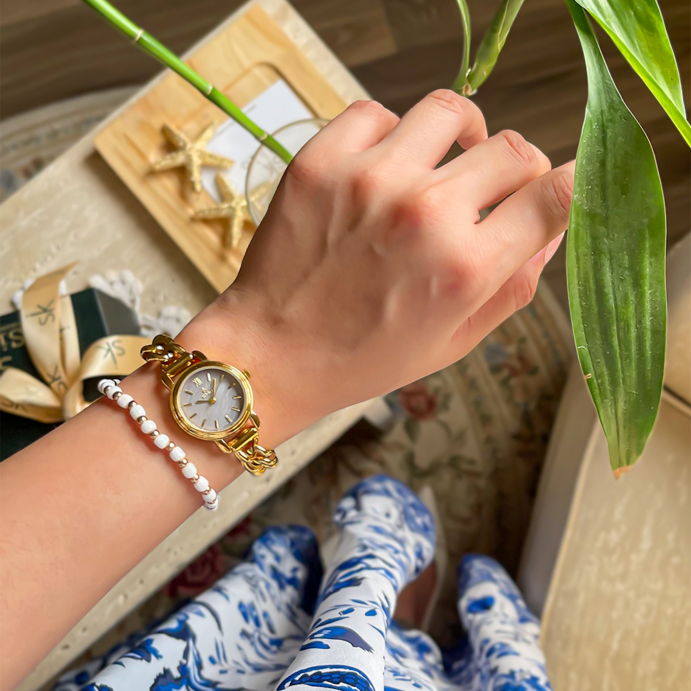 ساعة باللون الذهبي ميناء رصاصي