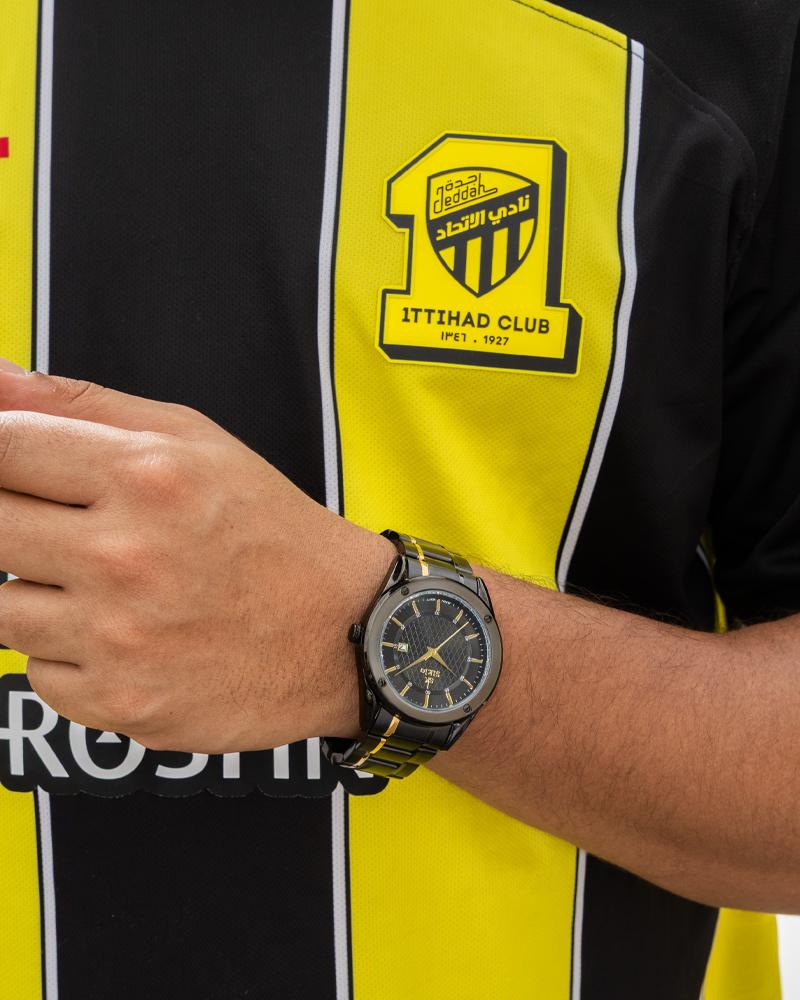 ساعة رجالية استيل باللونين الاسود والذهبي