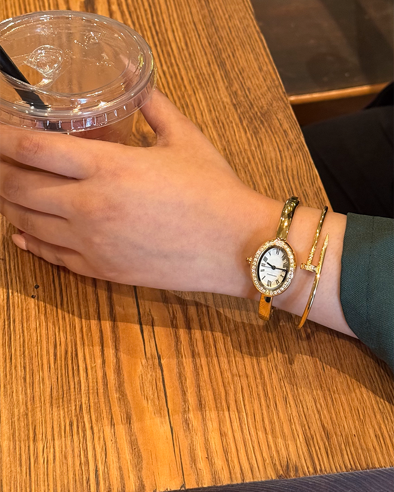 أناقة عصرية بنكهة فن هندسي راقي. هيكل ستيل لامع، يحتضن ميناءً عميقًا، يجسد سحر السماء في ليلة صافية تلمع نجومها ببريق ساحر فتتراقص على الميناء، لتروي قصة الوقت بأسلوب فريد و لتتناغم مع حضورك. بتصميم متناسق، يمنحك راحة لا مثيل لها ."حيث يلتقي الأناقة بالحداثة، لتكون إضافة مميزة إلى إطلالتك."