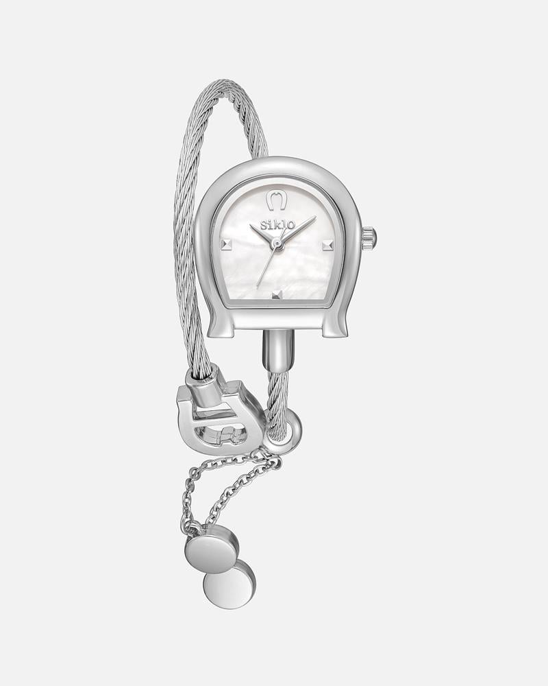 ساعة تألق بلا حدود، بميناء يلمع كمرآة الزمن، التي تتلألأ كنجوم مضيئة. يكتمل سحرها بأناقتها، وكأنها قطعة من الليل المرصّع بالنجوم تحكي قصة من الفخامة والتميّز.