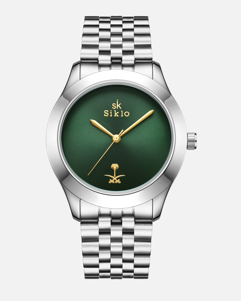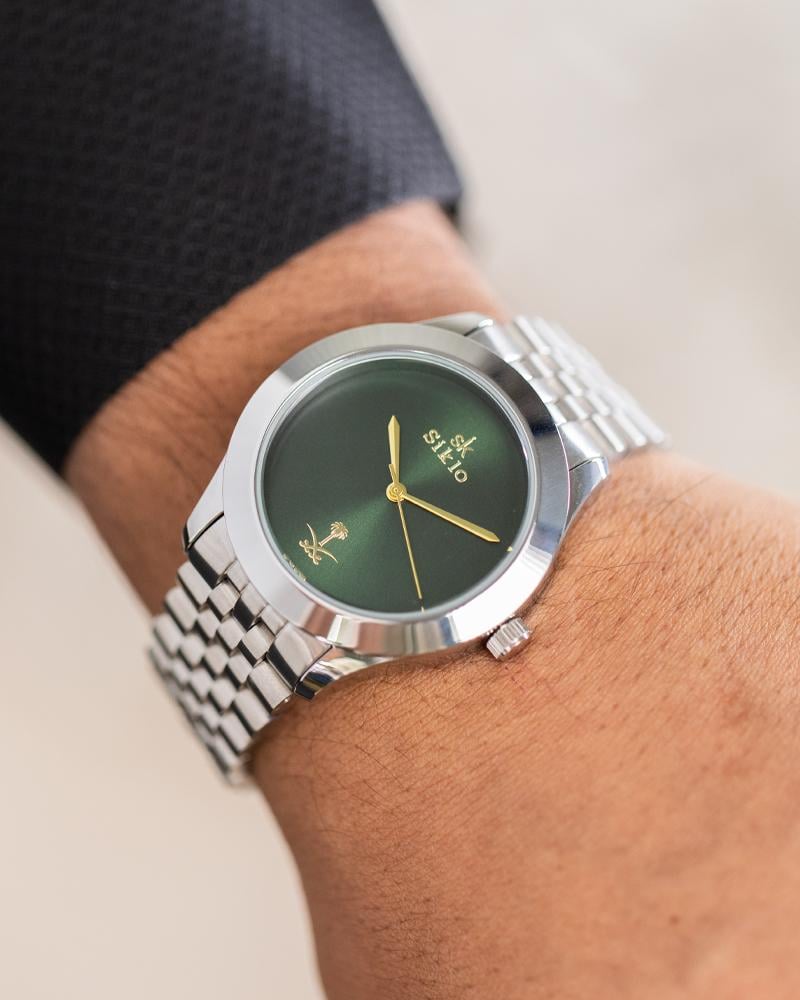 ساعة فريدة صممناها بتصميم سعودي فضي ميناء أخضر