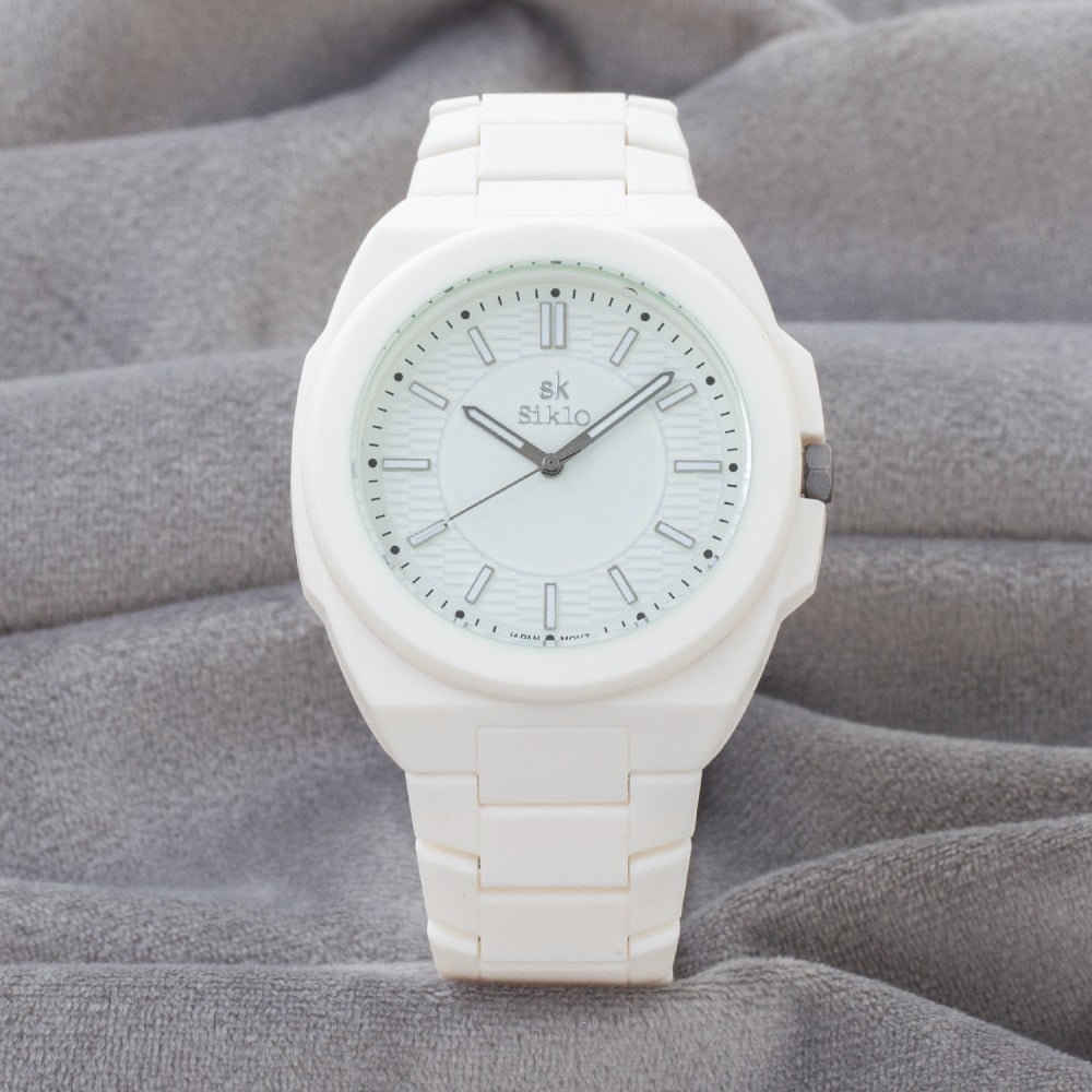 ساعة كربون تتميز بخفتها  باللون ابيض و تفاصيلها  الملفتة و حركة دقيقة ومميزة