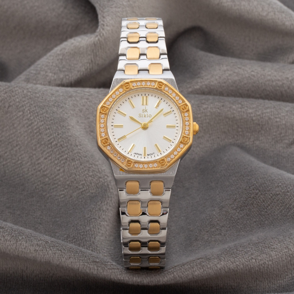 ساعة نسائية باللونين الذهبي والفضي