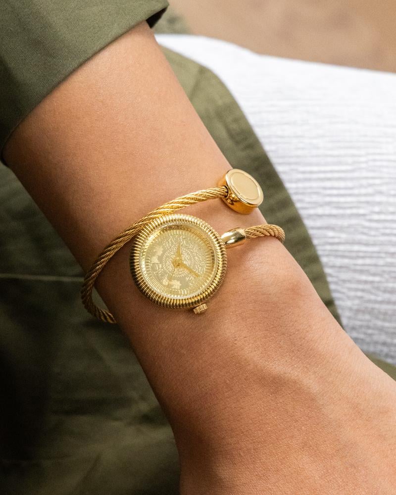 ساعة نسائية جديدة من ماركة سيكلو، ساعة نسائية بلمسات أناقة عصرية، ساعة نسائية من سيكلو بتصميم يزين لك معصمك و يحيطه بالجمال، ساعة نسائية مصنوعة لك من سيكلو بكل دقة و مثالية بسير من الستانلس ستيل حصير باللون الذهبي الباهر و مينا باللون الذهبي و إطار بشكل دائري مزين بنقوش لامعة و براقة، ساعة بتغليف مميز يصلك من سيكلو يشمل على علبة مربعة أنيقة باللون الاخضر و كيس باللون الاخضر مزين بشعار سيكلو باللون الذهبي، ساعة نسائية ستكون واحدة من ساعاتك المفضلة لارتدائها في كل وقت، ساعة مصممة لك من سيكلو لتعطيك طلة و حضور متألق و ملفت، ساعة ستجعل من إطلالتك رمزًا للجمال و ستعكس ذوقك الفريد.