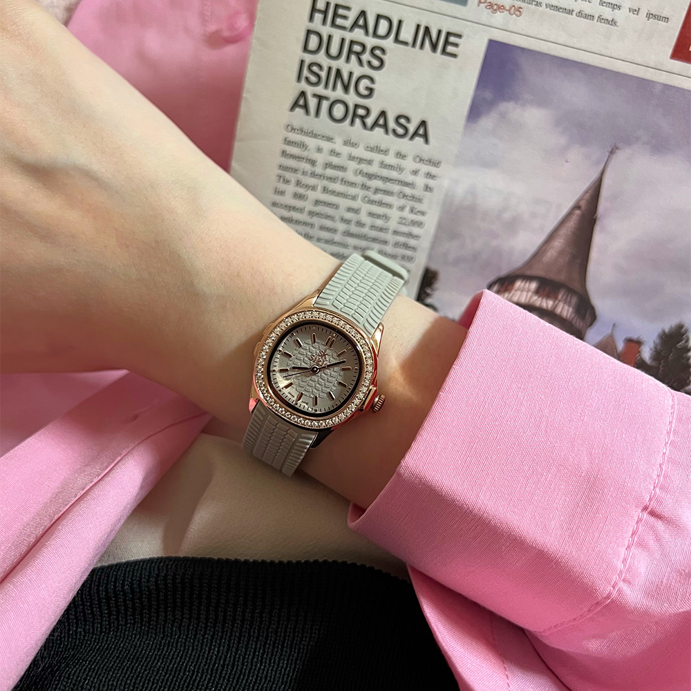 ساعة نسائية ربل فصوص زركون باللون الرصاصي ميناء رصاصي