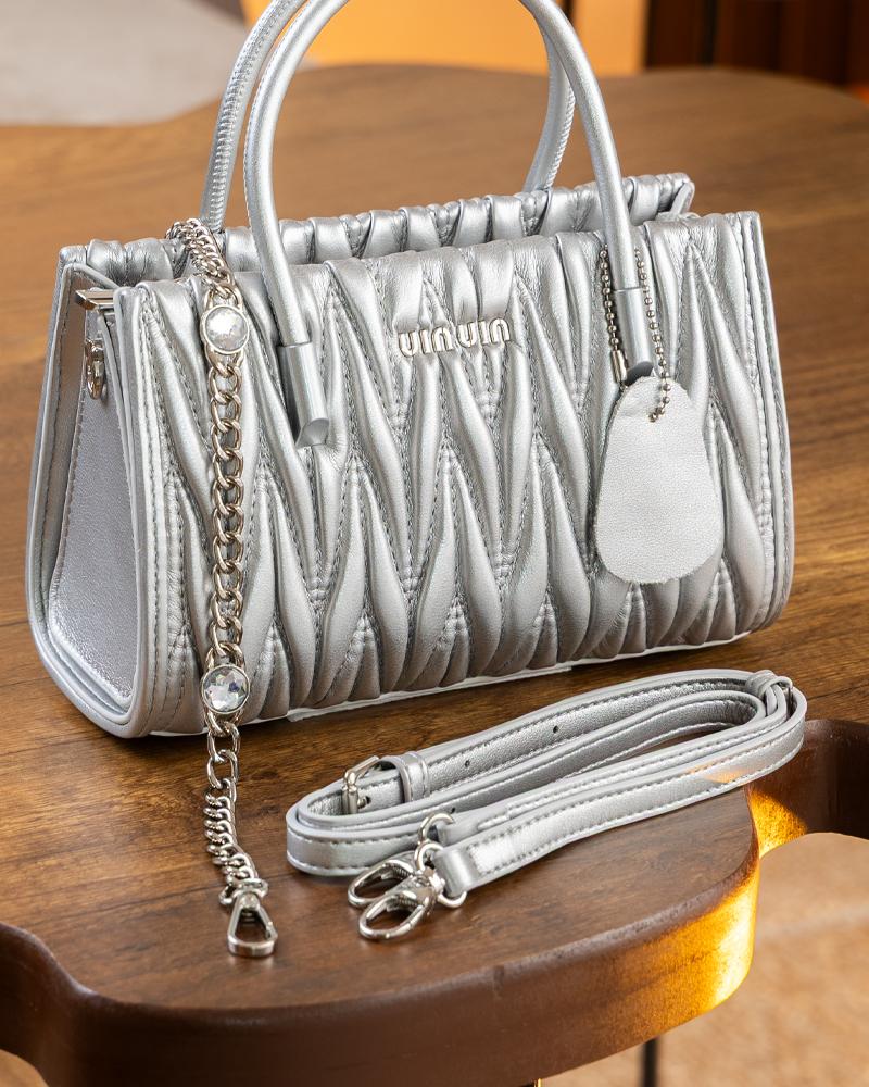 تألقي بإطلالة فاخرة مع شنطة فضي صغيرة تجمع بين الأناقة والعملية. تتميز هذه الشنطة بتصميم عصري يجذب الأنظار، حيث تأتي بلون فضي لامع يضفي لمسة من الرقي على أي إطلالة. القوام المحبب والملمس الناعم يجعلها مريحة في الاستخدام، بينما تضيف التفاصيل المميزة بُعدًا بصريًا رائعًا.