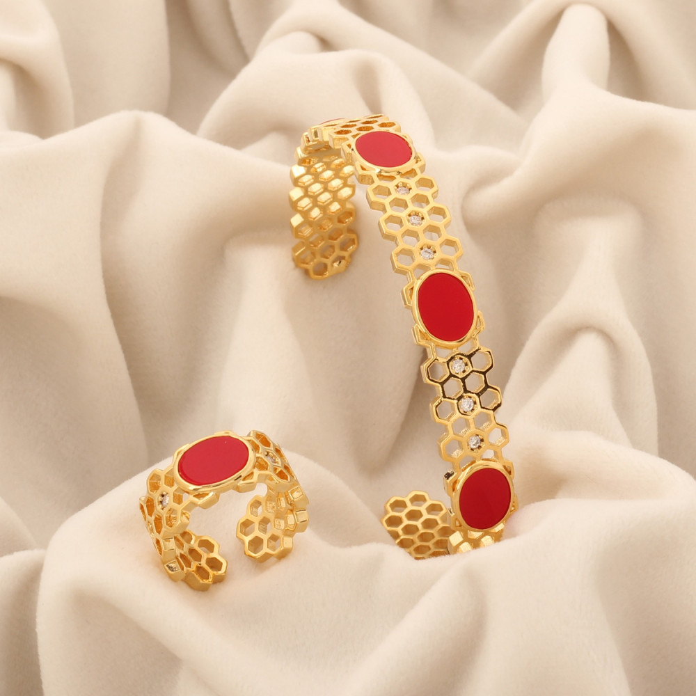 طقم اسوارة وخاتم باللون الذهبي