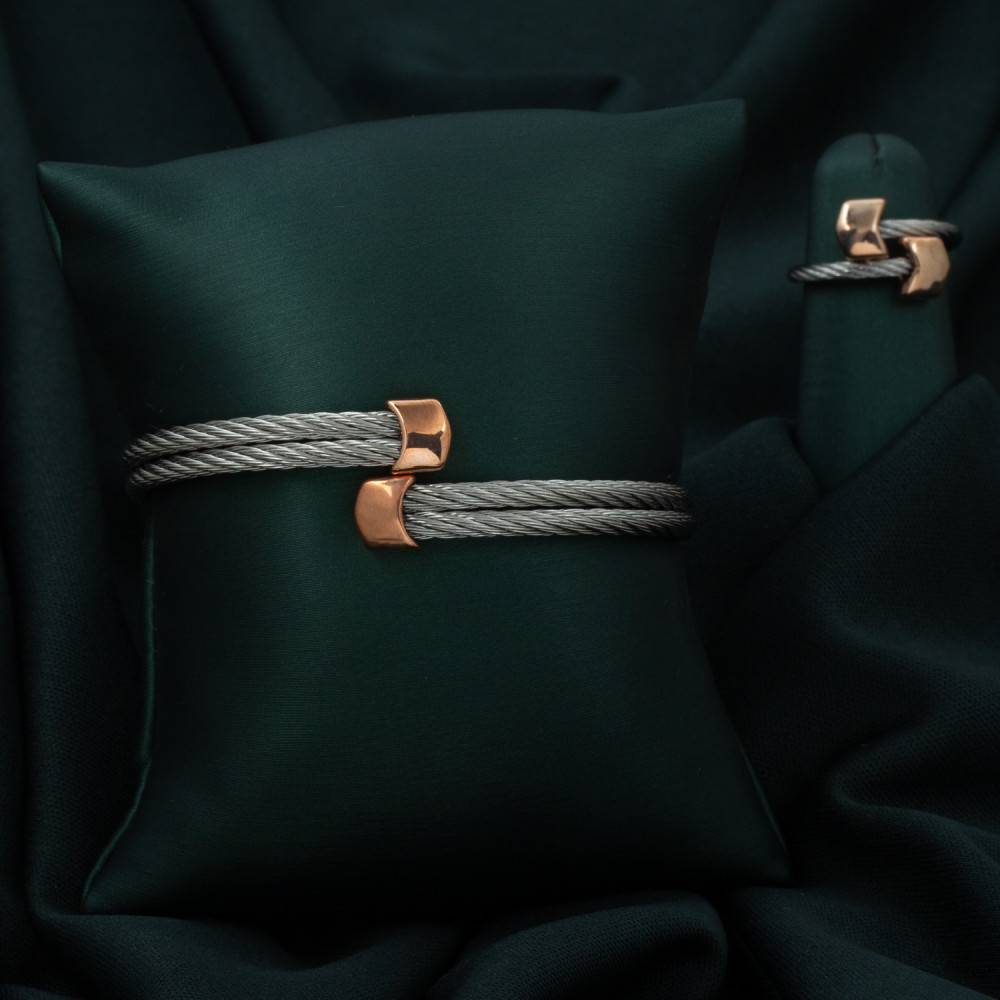 طقم اسوارة وخاتم باللون النحاسي على فضي