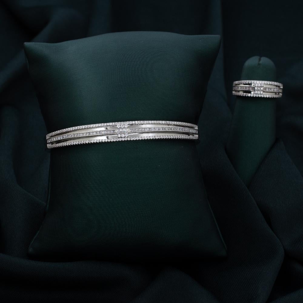 طقم اسوارة وخاتم نسائي من سيكلو, اسوارة وخاتم باللون الذهبي وفصوص لامعة بتصميم مذهل بأطراف مميزة تتناسب مع إطلالتك وتزيدها جمالًا, بإمكانك التحكم بمقاس الاسوارة والخاتم, طقم سيكون من مفضلات إكسسواراتك.